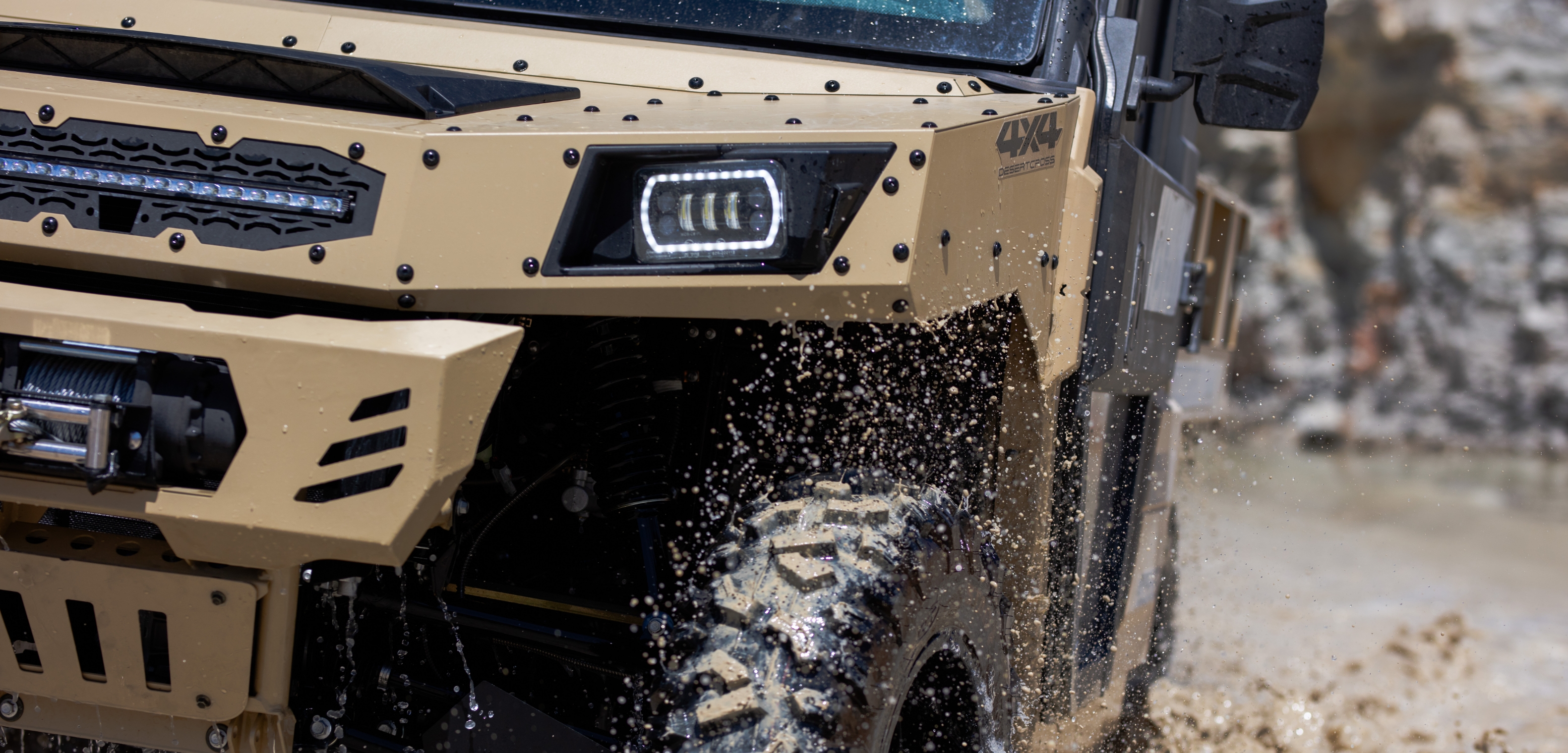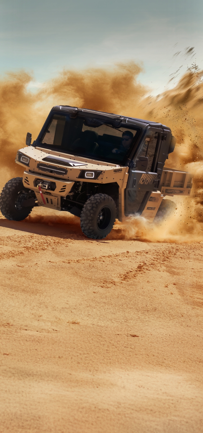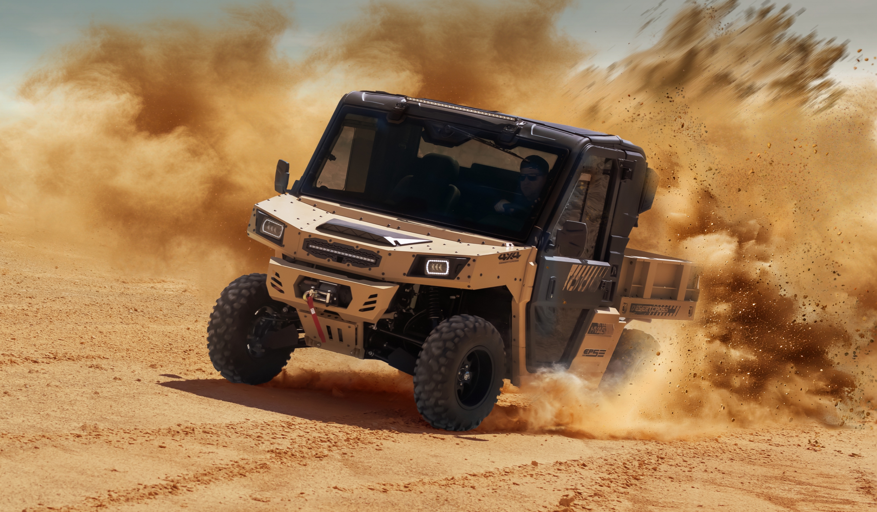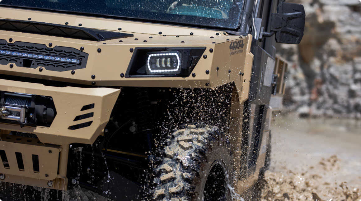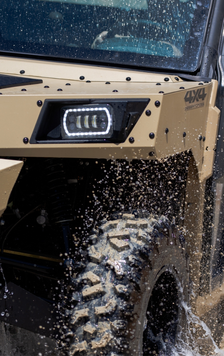 Die serienmäßige 4500 lb-Seilwinde macht die DesertCross bereit für jede Herausforderung. Robust und zuverlässig sorgt sie dafür, dass du auch in schwierigstem Gelände nie steckenbleibst.